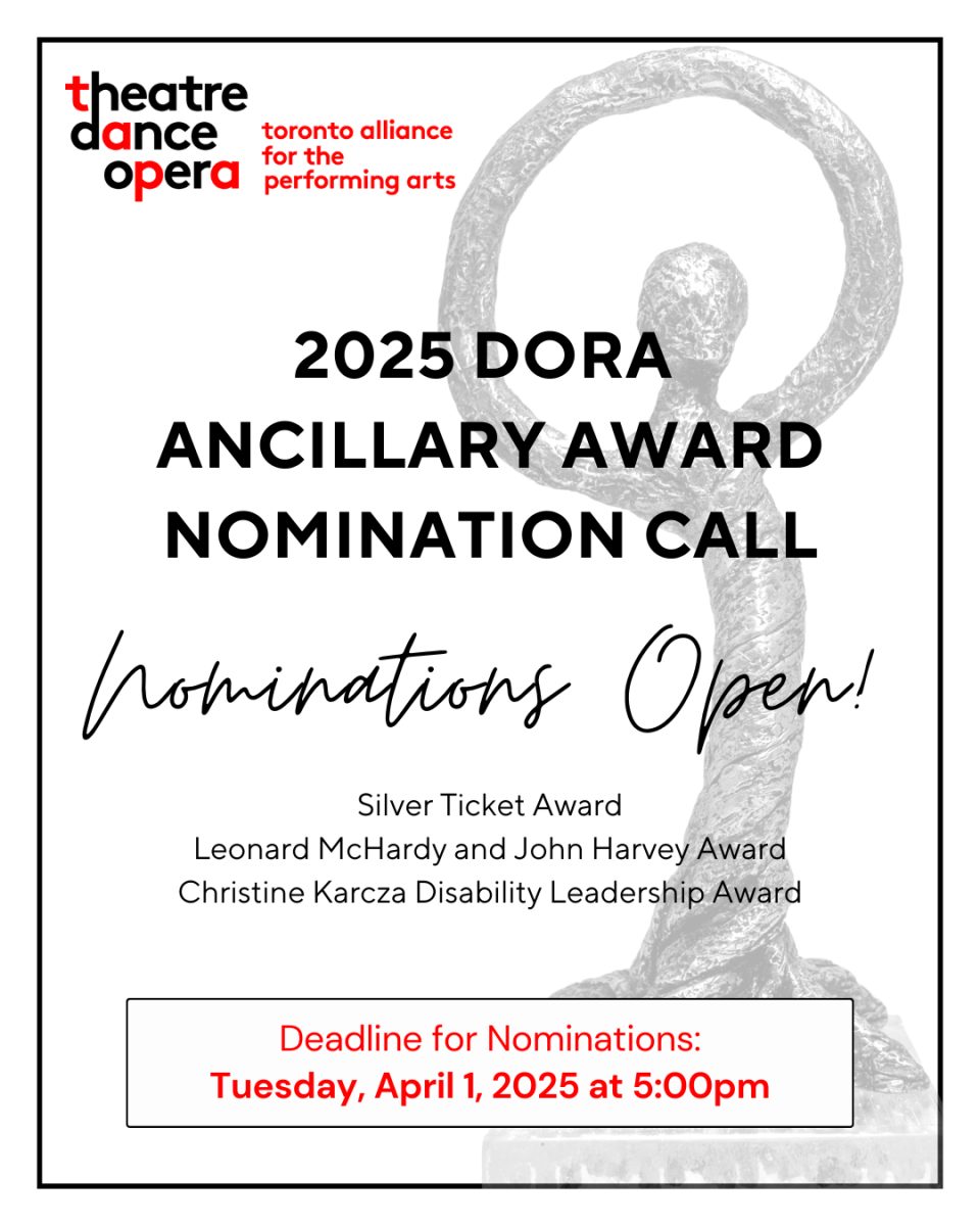 - Contacting Scott Dermody (Dora Awards Manager) at scottd@tapa.ca or by phone at (416) 536-6468 x 2 to arrange an alternate submission format with an access support staff member.